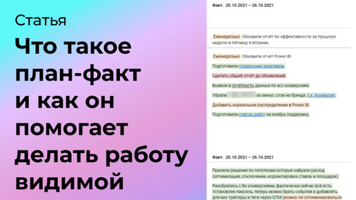Недостаток прозрачности и объективной информации о ходе работы, а также достигнутых результатах – эта проблема есть не только в компаниях, но и на фрилансе. Я уверен, что делать работу видимой крайне важно. Решение этой проблемы вижу в план-факте. Внедрение будет полезно для всех уровней: владельцев бизнеса, руководителей, рядовых сотрудников, даже для фрилансеров. В статье расскажу, что такое план-факт проекта, как он помогает делать вашу работу видимой для начальства и клиентов. Больше полезных материалов можно найти в моём блоге...