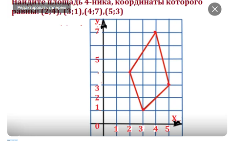 Найти площадь четырёхугольника на линованной бумаге по координатам