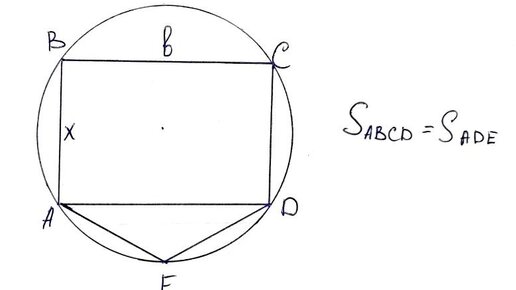Приветствую Вас, уважаемые Читатели! Прежде чем переходить к псевдоэвклидовым пространствам, а также к продолжению материалов по теоретико-множественной топологии, я предлагаю Вам решить простую геометрическую задачу на обыкновенной плоскости. Итак, требуется найти значение х, при котором площади прямоугольника, вписанного в окружность, и равнобедренного треугольника...