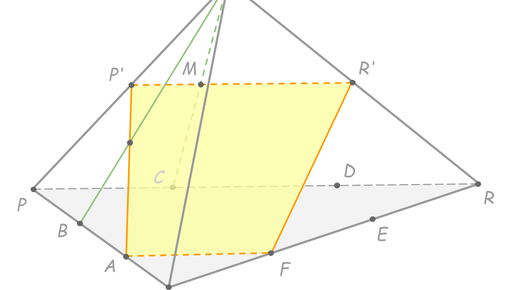 В этой статье я разберу, как строить сечения пирамид, у которых данные точки сечения находятся на соседних ребрах. Более сложные случаи — в следующих статьях. Итак нам дана пирамида SABCDEF. Я рассмотрю шестиугольную пирамиду, но для остальных пирамид принцип построения будет таким же. Алгоритм построения Сначала найдем, по какой прямой сечение пересекает плоскость основания.