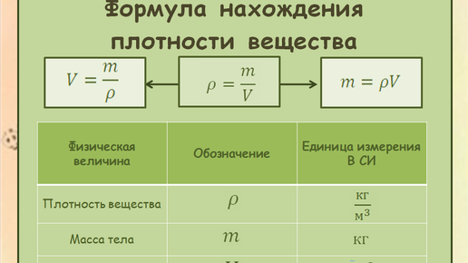 Рассмотрим и решим задачи на формулу нахождения плотности вещества. Отработаем задачи на все величины этой формулы. Для начала вспомним, что такое плотность вещества и как ее найти. Теперь посмотрим, как называется каждая величина из формулы, в чем она измеряется и как выводится. Задача 1. Сосновый брусок массой 1 кг имеет объем 2,5 см3. Определите плотность сосны. Внимательно читаем задачу. Мы видим, что нам дан брусок. Известна его масса и объем. При этом мы знаем, что любое тело состоит из какого-то вещества...