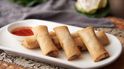 Пох Пиа Тод, или тайские блинчики с начинкой, - это самая популярная закуска для тайцев. Хрустящее, тонкое, как бумага, тесто, обжаренное до хрустящей золотистой корочки и наполненное ароматными свежими овощами, Poh Pia Tod - идеальная закуска, закуска, закуска или перекуса, которым можно наслаждаться в любое время дня. Обычные начинки включают овощи, смешанные с жареной свининой или курицу с чесноком, а также капусту, лук, морковь, грибы или вермишель из муки маш...