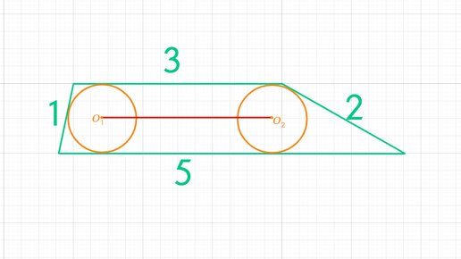 20. ★★☆ Основания трапеции равны 3 и 5, а её боковые стороны равны 1 и 2. Каждая из двух окружностей касается трёх сторон трапеции. Найдите расстояние между центрами этих окружностей Идея решения I способ...