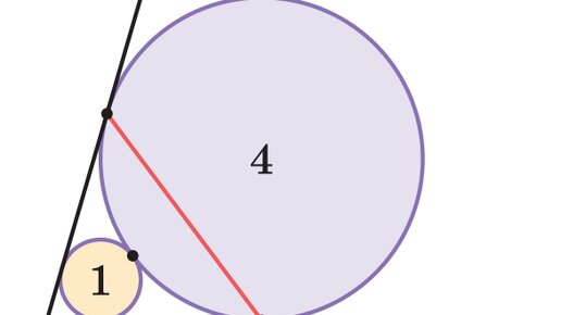 Задача: Окружности с радиусами 1 и 4 вписаны в один угол и касаются друг друга. Найдите расстояние между точками касания большей из этих окружностей со сторонами угла. ©Математическая Вертикаль. Учебное пособие для общеобразовательных организаций. Автор: М.А.Волчкевич. Решение: (Решение с использованием теоремы косинусов) Поскольку обе окружности вписаны в один тот же угол, то центры окружностей лежат на биссектрисе данного угла. Проведём радиусы OD, O1B и O1C в точки касания со сторонами угла...