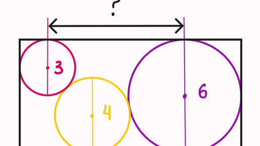 Дан прямоугольник, в котором находятся три окружности с разными диаметрами: 3, 4 и 6.