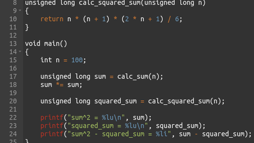 Проект Эйлер 6: Сумма квадратов и квадрат сумм
