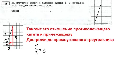 Найдите тангенс острого угла по клеточкам. Задание из огэ в девятом классе