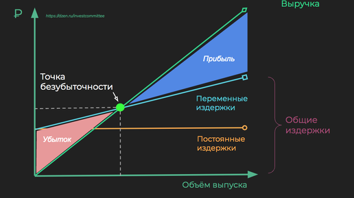 Точка безубыточности помогает быстро понять, есть у вас прибыль или нет. А также дает лучшее понимание финансового состояние вашего бизнеса, позволяет принимать обоснованные решения, и разрабатывать стратегии для достижения финансового успеха. Этот "must have" показатель является неотъемлемой частью финансового анализа и планирования, и помогает обеспечивать устойчивое развитие вашего бизнеса. Давайте на графике ниже наглядно посмотрим, что такое точка безубыточности: На графике точка безубыточности обозначена яркой зелёной точкой, в которой линия выручки и общих издержек пересекаются...
