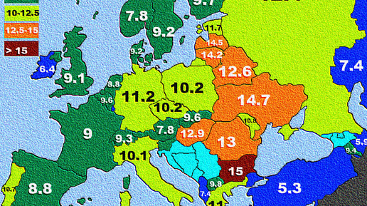 Добрый день, уважаемый читатель! Сегодня мы с Вами рассмотрим карту Европы по такому показателю как Коэффициент смертности. Этот коэффициент показывает количество умерших за год человек на 1000 населения. Для построения карты в основу взяты данные Росстата и Всемирного Банка. Сразу оговорюсь, что показатель России находится ровно в пограничном положении и поэтому его можно отнести как "жёлтой", так и к "оранжевой" зоне. Этот показатель в последние 20 лет неуклонно снижается, как в России так и во всём мире, что связано с прогрессом в медицине...