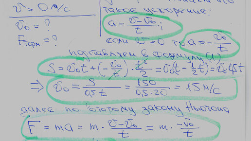 Задача: Поезд массой 1000 т останавливается при торможении за 20 с пройдя при этом расстояние 150 м. Найти начальную скорость поезда и силу торможения, если он двигался равнозамедленно. Лирическое отступление. Решали задачу в группе, но вот так иногда бывает задача не пошла. Хотя сейчас понятно, что задача очень простая. Но мы пошли изначально не по верному пути и навёл на этот неверный путь ни кто иной как преподаватель, то есть я. Я как Моисей сорок минут водил группу по ложному следу, без злого умысла запутывал следы, и добросовестно заблуждался сам...
