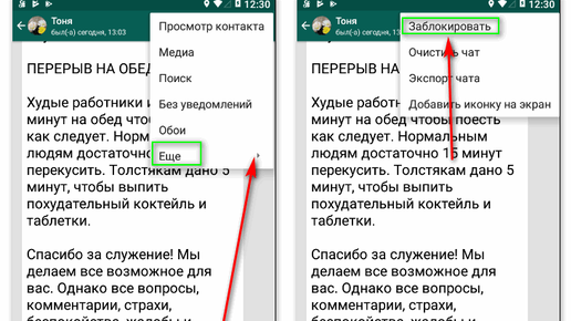 Как заблокировать контакт в Вацапе и занести в черный список как спам ?