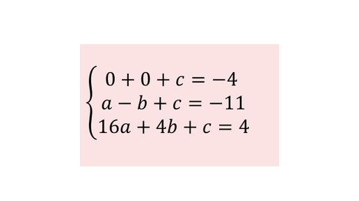 Парабола проходит через точки A (0; –4), B (–1; –11), C (4; 4)...