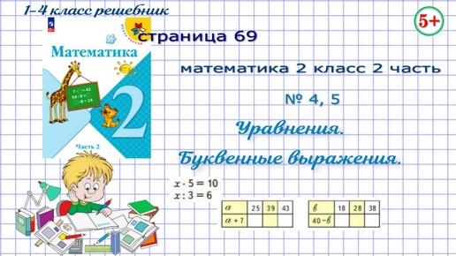 Стр. 69 № 4, 5 математика 2 класс 2 часть Моро 2023 г. уравнения, буквенные выражения / 1-4 класс решебник