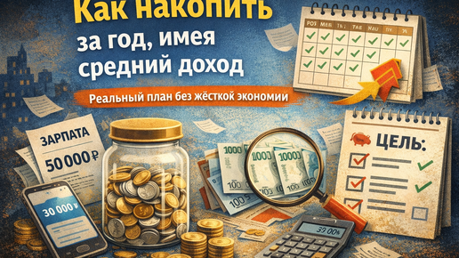 Как накопить за год, имея средний доход: реальный план без жёстких ограничений.