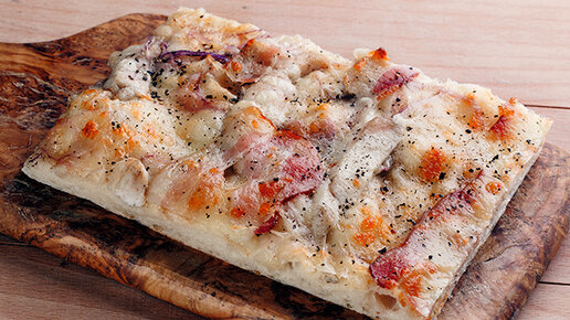 У этой пиццы нет полезных качеств кроме одного: ей можно накормить до отвала внезапно нагрянувшую орду гостей. В праздники лучше держать этот рецепт под рукой! Готовит шеф-повар Денис Коваленко Что нужно Что делать 1. Подготовь ингредиенты: курицу нарежь тонкими брусочками, бекон — небольшими ломтиками, луковицу — тонкими колечками, моцареллу натри на крупной терке. 2. Тесто выложи на противень и, надавливая пальцами, растяни его равномерно по всей поверхности ровным слоем толщиной 1–1,5 см. (Чтобы...