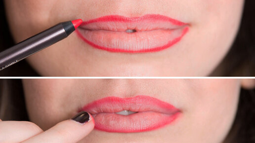 Красивый контур на губах зависит от того, как он накрашен карандашом. Именно он создаёт манящий излом. Рассмотрим технику нанесения в двух вариантах – с использованием помады и с применением только карандаша. Перед тем, как подробно рассказать об этих техниках, отмечу, что всегда надо подчёркивать карандашом исключительно контур. Не стоит выходить за него, как это рекомендуют некоторые beauty-блогеры, обещая, что так вы добьётесь эффекта чувственного рта. Также не ретушируйте кайму, чтобы скрыть объём губ...