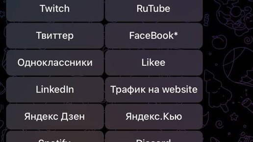 Я нашел самый удобный и быстрый способ накрутки, где не требуется регистрация и очень большой выбор услуг и социальных сетей. Это бот в телеграмме. Список социальных сетей доступных для накрутки. Простое и удобное меню Когда я нашел этот бот...