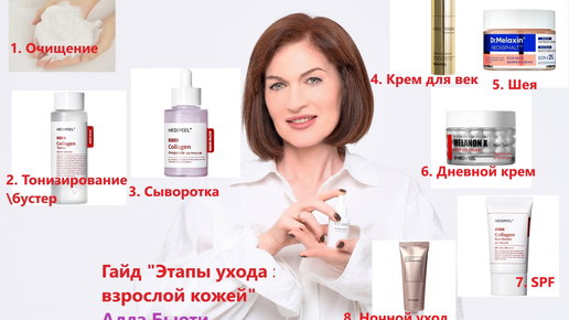 ✍️ Чтобы уходовые средства работали эффективно, важно правильно их наносить и соблюдать последовательность. 1️⃣ Очищение (утром и вечером) 🚿 Главное правило: очищать кожу мягко, но тщательно. ✔️ Вечером – интенсивное очищение, чтобы убрать макияж, SPF и загрязнения. ✔️ Утром – лёгкое умывание, чтобы освежить кожу и удалить излишки себума. 📌 Как умываться? - Вечером – более тщательно. - Утром – слегка для тонизирования и убрать ночной себум/ночной уход - И в том, и в другом случае достаточно одного этапа...