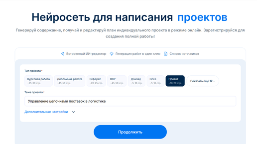 Написание индивидуального проекта — задача, с которой рано или поздно сталкивается каждый студент. Это всегда вызов: нужно не только найти информацию, но и сформулировать цель и задачи, грамотно выделить проблему, подобрать литературу, а затем превратить всё в связный и оформленный документ. Обычно уходят недели, а результат не всегда гарантирует высокую оценку. Но с появлением специализированных ИИ-инструментов процесс существенно изменился. Wordy — современный нейропомощник, который избавляет учащихся от утомительного процесса написания проектов...