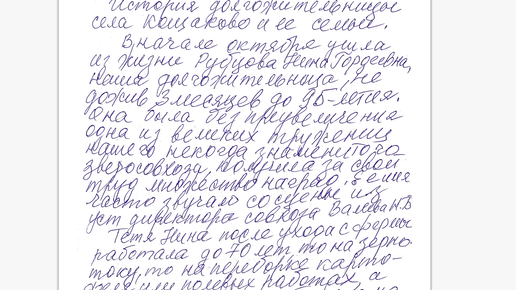 Ветеран педагогического труда, отличник просвещения РСФСР Анна Мишанина написала очерк в память о долгожительнице из села Кощаково. В начале октября ушла из жизни Рубцова Нина Гордеевна, не дожив трех месяцев до 95-летия. Она была, без преувеличения, одной из великих тружениц нашего некогда знаменитого зверосовхоза, получила за свой труд множество наград. Ее имя часто звучало со сцены из уст директора совхоза Валеева Н.Б. Тетя Нина после ухода с фермы работала до 70 лет – то на зернотоке, то на переборке картофеля, или на поле...