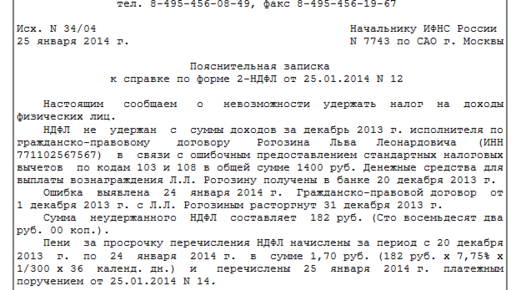 Пояснительная записка в налоговую по требованию - образец