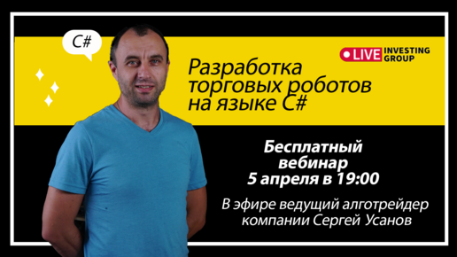 Всех, кому интересен #алготрейдинг и #программирование, мы приглашаем на бесплатный вебинар "Программирование торговых роботов на С#", который пройдет 5 апреля в 19:00 на нашем YouTube-канале https://www.youtube.com/c/LIVEInvestingGroup/featured