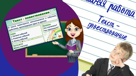 По сути, повествование – это обычный рассказ. Как правило, в повествовательном тексте перечисляются и описываются события, которые следуют друг за другом. И здесь важная роль отводится глаголам – с их помощью автор сообщает (повествует), какие именно действия выполнялись (и кто их выполнял). Мы узнаём о том, что уже свершилось и весь текст как бы отвечает на вопросы что было? что случилось? что произошло? Поэтому в тексте-повествовании глаголов всегда много, это «база» повествования. Выполняя упражнения, разбираемся с ролью глаголов, а также самостоятельно учимся составлять текст-повествование...