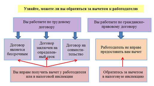 Какие вычеты и по каким налогам доступны по месту работы? Физлицо может получить налоговый вычет по НДФЛ: Технология получения вычетов при этом различна. Например, чтобы оформить в ФНС налоговый вычет, вам нужно: Подробнее о том, какие расходы можно компенсировать с помощью налогового вычета, рассказывается в публикациях: Однако у физлица есть возможность не ждать, пока закончится год. Воспользоваться вычетом можно сразу после покупки квартиры (оплаты обучения, лечения), если его предоставит работодатель...