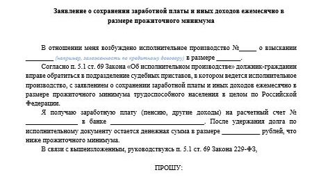 Заявление на сохранение прожиточного минимума. Как написать?