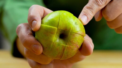 Неочевидный способ разрезать яблоко на 8 частей, не мучаясь с удалением сердцевины. Делюсь полезным советом