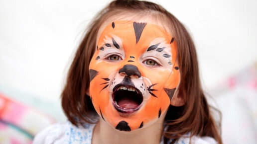 Аквагрим «Тигр»: простой рисунок для детей на лице