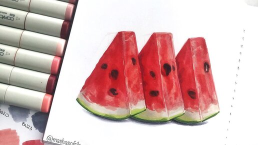 Как нарисовать дольки арбуза спиртовыми маркерами? || Пошаговый урок