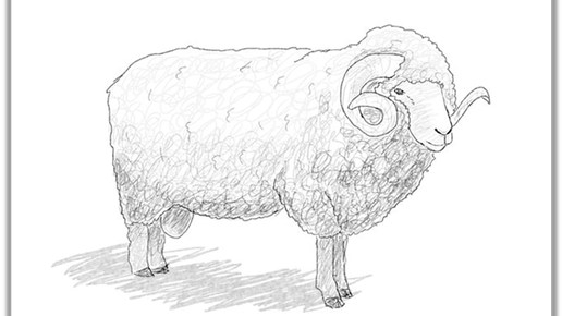 В этом уроке мы рассмотрим, как нарисовать барана карандашом поэтапно для начинающих. Рисуем круг, это голова и тело в виде прямоугольника. Затем на голове отмечаем его середину линией и пририсовываем морду. Изображаем ноги барана. Нарисуйте мордочку, нос, рот и глаз, потом спиралями покажите рога и мелкими закругленными движениями показываем шерсть на голове и шее. Дорисовываем рога и мордочку. Нарисуйте тело барана, линии не прямые, а показывающие пушистость шерсти, как будто рука дрожит мелкой дрожью...