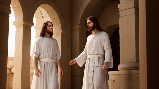 Будет несколько статей не в хронологическом порядке. Сегодня показываю картины в древнем иерусалимском храме. Иисус и Симон (Пётр) беседуют возле храма...
