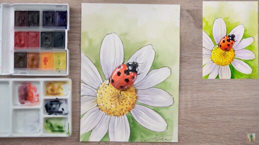 Как нарисовать божью коровку на ромашке? Видеоурок рисования акварельными красками