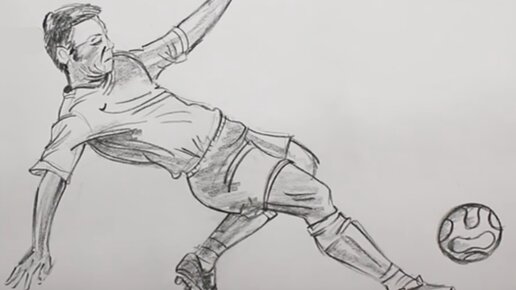 Простой карандаш — основной инструмент художника, потому надо обязательно научиться тому, как нарисовать футболиста карандашом. На этот раз будем рисовать взрослого спортсмена, притом в очень интересной позиции. Как и в предыдущем варианте, первым делом сделаем общий набросок. Вначале изобразим верхнюю часть туловища: обратите внимание, что туловище и руки практически образуют букву «х». Правая рука почти касается земли. Футболист почти лег, чтобы дотянуться до мяча и отбросить его как можно дальше...