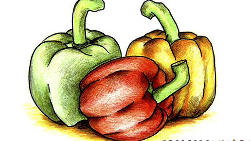 Как нарисовать цветными карандашами "Болгарский перец" | Рисунок для начинающих поэтапно и легко