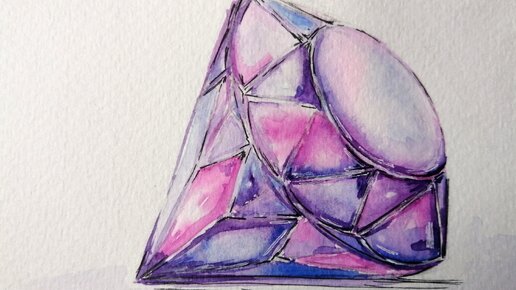 Этот бриллиант я планировала нарисовать давно. Во время новогодних праздников даже сделала карандашный набросок. Но потом никак не могла собраться и взять краски. Сегодня решила, что пора. И вот результат: Без ошибок, как всегда не обошлось. Во-первых, бриллиант получился кривой. Пока с трудом мне удаётся делать ровные линии. Во-вторых, закрасила то, что не надо было - ребра камня. Но зато сделала несколько открытий и уже готовлю очередной урок (ага, вот так смело и назвала - урок) "Как нарисовать бриллиант, если не умеешь рисовать"...