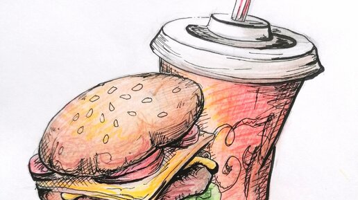 За 5 минут нарисовали классный бургер. Делюсь с вами этим простым способом.
