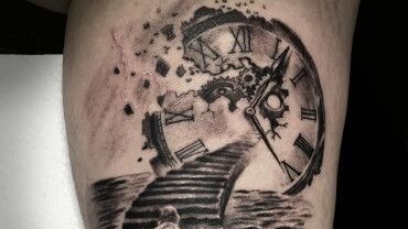 Недаром это такой такой популярный символ в татуировке. Давайте посмотрим, какими они бывают. ФОТО ТАТУ С ЧАСАМИ Сразу отметим, что почти все татуировки с часами делают в реализме. Чёрно-белом или цветном, но реализме. Второй важный момент: часы редко одиноки. Часы — либо важная, либо второстепенная часть татуировки. Одна из самых распространённых комбинаций — тату и лестница: А вот тату...