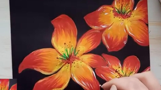 Всем привет! Меня зовут Екатерина, я художник-видеоблогер. Веду свой YouTube канал под названием "TessaArt" :) Сегодня мы нарисуем простые цветы гуашью. Этот урок отлично подойдет начинающим, а также тем, кто впервые знакомиться с таким материалом, как гуашь. Список материалов: Я использую черный лист бумаги, но если у вас такого нет, предварительно можно окрасить бумагу черной краской и дать ей сутки на высыхание. Для цветов я буду использовать желтый, оранжевый и красный цвета. 1. Намечаем контур цветов карандашом...