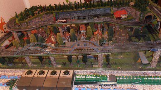 (Информационная заметка) Данный жд макет скорее предназначался для детей, и не располагает замысловатыми алгоритмами движения по станциям. Только перегоны, но достаточно длинные. Поезд будет долго видно, пока он едет в видимой части путей, и не заехал в туннель. На мой взгляд, жд макет выглядит футуристично. Хотя если посмотреть на хитросплетения строящихся московских дорожных развязок, вроде ничего необычного. Так как макет установлен у стены, доступ к задней части будет затруднён. Регулярной процедуры обслуживания и чистки путей в том секторе не будет...