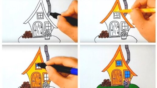 Домик рисунок для детей. Как нарисовать домик. Рисунок лето. Как нарисовать лето. Дом рисунок легкий. Карандаши и краски