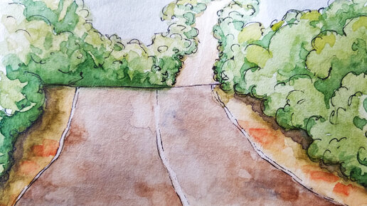 Рисуем дорогу, уходящую в даль. Уроки рисования для новичков.