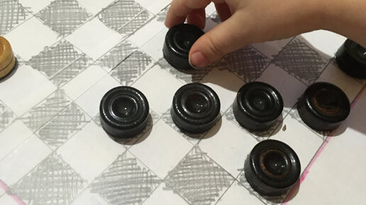 Приветствую всех заглянувших ко мне в гости! Сегодня я хочу предложить вам вариант, чем можно заняться дома, когда нет настольных игр . Вчера вечером моя 4-хлетняя дочь подошла ко мне с вопросом "А что такое шашки?" Я поверхностно объяснила ей правила игры, а дальше смотрю.... Она рисует доску. Линии неровные, но уж как получается. Одна доска не получилась. Ничего страшного. Рисует вторую. Тоже получается не очень. Третья лучше, но тоже не эталон :) Тут подключилась я. Хотела просто нарисовать черно-белую доску, чтобы показать дочери принцип игры в шашки...