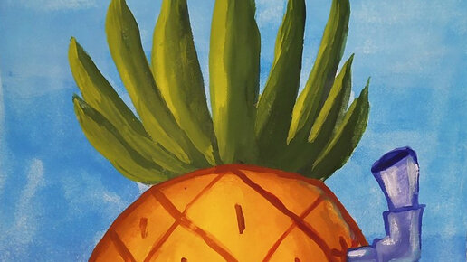Домик Губки Боба гуашью (пошаговое рисование)