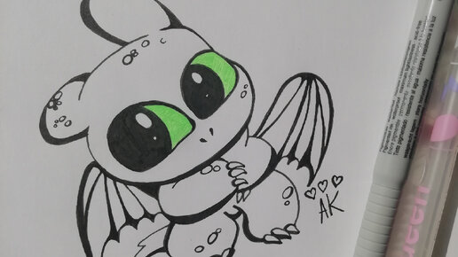 Сегодня я покажу как за несколько шагов можно нарисовать Ночную Фурию. Такой Беззубик у меня получился! Рисуйте вместе со мной и добавляйте свои рисунки в комментариях!) Это была вторая попытка нарисовать Ночную Фурию...