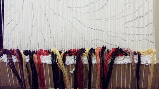 Как натягивать основу, я покажу вам с помощью видео. Скоро подготовлю его. Сейчас хочу обсудить эскиз и шаблон. Они необходимы, если вы не собираетесь ткать однотонное полотно. Даже для абстрактных пятен или полосок необходим эскиз. А для точного выполнения задумки нужен шаблон. Эскиз – это разработка вашего рисунка в цвете, воплощение идеи и задумки на бумаге. Это может быть пейзаж, натюрморт, портрет, абстракция, декоративные полоски, игра с различной фактурой. Эскиз рисуется красками или цветными карандашами...
