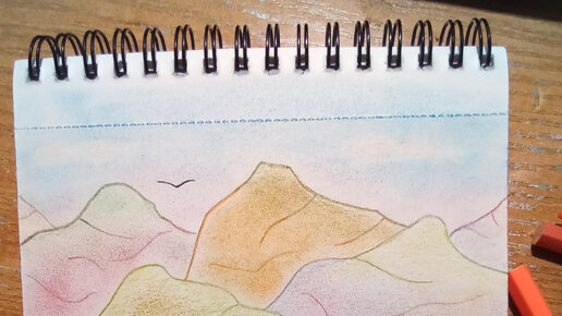 Рисовать красиво и просто вполне реально. Ну, мы не Пикассо, Васнецов, Репин или прочие художники, чьи картины висят в знаменитых музеях и частных коллекциях. И что? Красота доступна всем! И чтобы её творить могут понадобиться только цветные карандаши, ластик, ножницы и бумага. И простой карандаш, куда же мы без него? 1. Берём лист бумаги/белого картона/ватмана и рисуем линию. Можно прямую – хоть по линейке – можно от руки. Я рисую чуть неровную. И над ней рисуем контуры наших гор, не давя на карандаш, чтобы, если что, можно было исправить...
