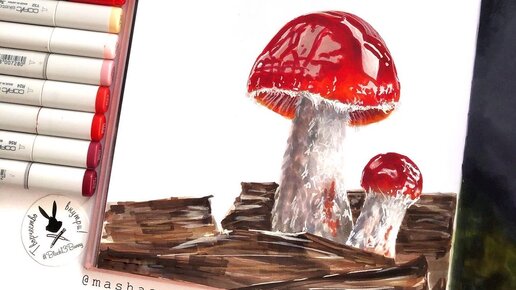 Как нарисовать гриб спиртовыми маркерами? || Пошаговый урок
